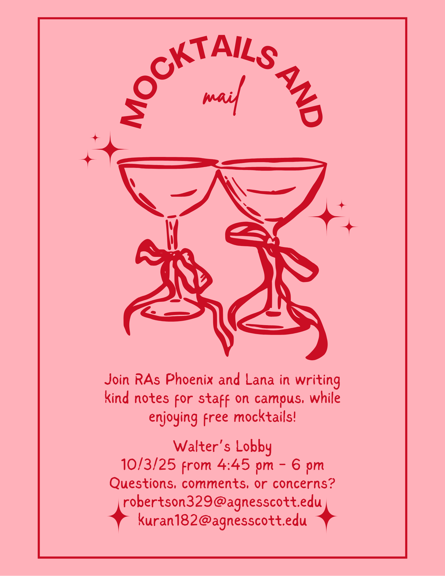During my time in undergrad, I’ve had the honor of working as a Resident Assistant for the Agnes Scott community. Acting as a first responder, I collaborate with the Office of Residence Life Professional Staff and Resident Assistant team to ensure the safety of students on campus. Being an RA has strengthened my communication and collaboration skills in ways I’ve never imagined. I’m so grateful to be chosen for such an important leadership role and cannot wait for my next year as an RA.